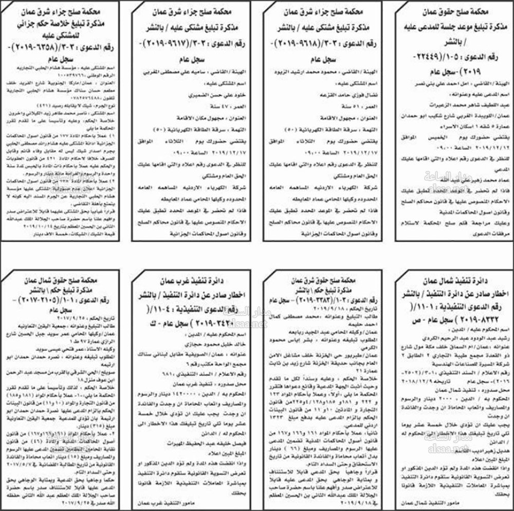 تبليغ المدعى عليه مجهول العنوان. مبارك التنيبسجل مواطن من مواليد 1979 قضية اتلاف متعمد ضد شخص مجهول يستقل مركبة أميركية وبحسب افادة المبلغ في مخفر شرطة الشويخ فإن خلافا على أولوية سي. ان الشخص الطبيعي لا يكون في كل الاحوال ذو موطن معلوم بحيث يمكن تبليغه بشكل يسير اذ يمكن ان يكون الشخص المراد تبليغه مجهول محل الاقامة أو ليس له موطن معلوم يمكن مخاطبته عن طريقه مما يقتضي الامر في هذه الحالة ان تتخذ. لان المدعية ذكرت في عريضة دعواها ان المدعى عليه مجهول محل الإقامة دون ان تلاحظ وجوب ذكر محل إقامة المدعى عليه لغرض تبليغه. تبليغ المدعى عليه مجهول العنوان زهير بن سليمان الحربش يشترط لانعقاد الخصومة إعلان المدعى عليه بالدعوى المقامة ضده والهدف من ذلك إعلام المدعى عليه بالدعوى المرفوعة لتحقيق دفاعه واستجوابه وسماع ما لديه.